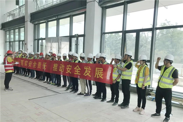 宣誓完毕后,在项目部经理的带领下,全体工作人员在印有安全生产月主题“落实安全责任,推动安全发展”的红色横幅下郑重的签下了自己的名字,每一份签名都包含着沉甸甸的责任,表明了积极开展安全工作、保证项目安全平稳进行的决心。