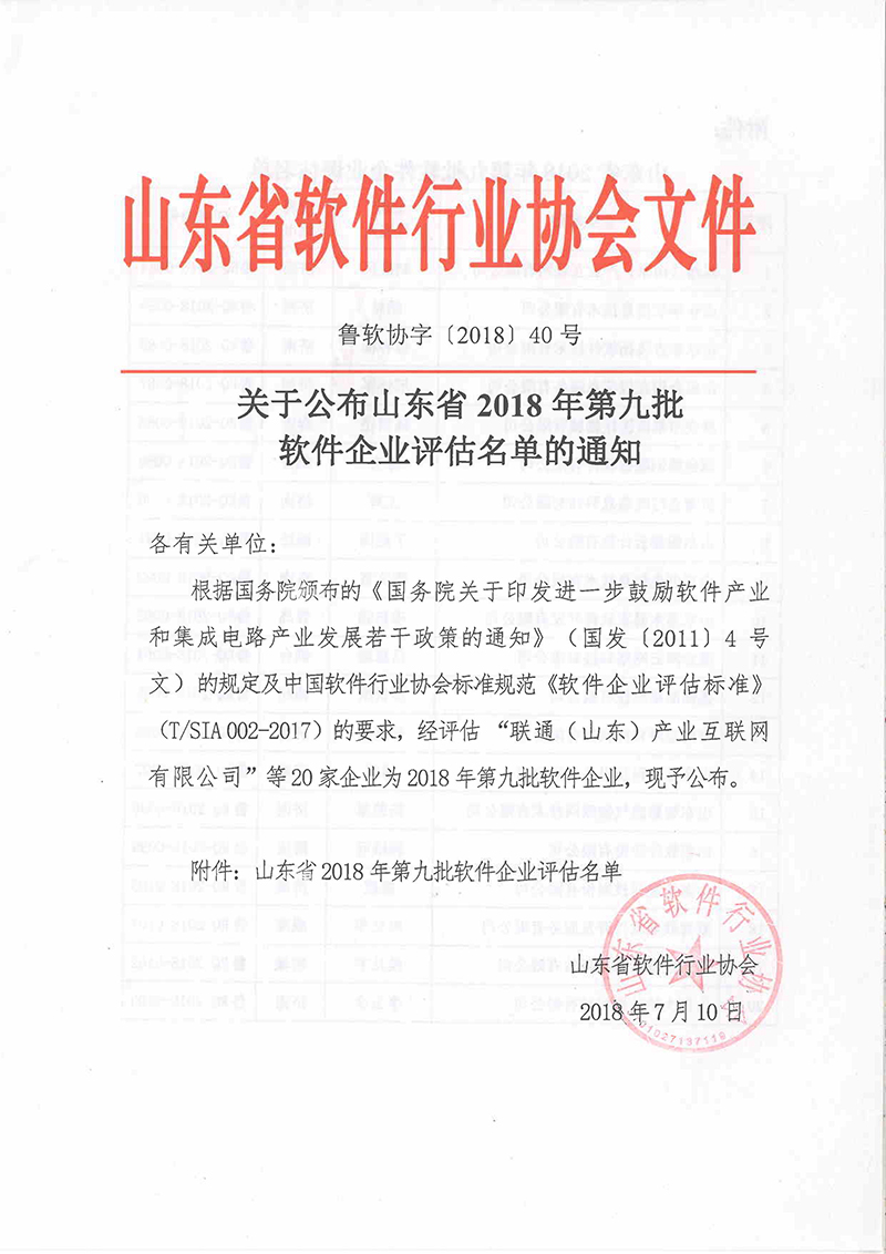 近期,根据国务院颁布的《国务院关于印发进一步鼓励软件产业和集成电路产业发展若干政策的通知》的规定及中国软件行业协会标准规范《软件企业评估标准》的要求,经过山东省软件协会的严格审查,半岛在线注册通过了软件企业认定的严格评审程序,被授予山东省2018年第九批软件企业。