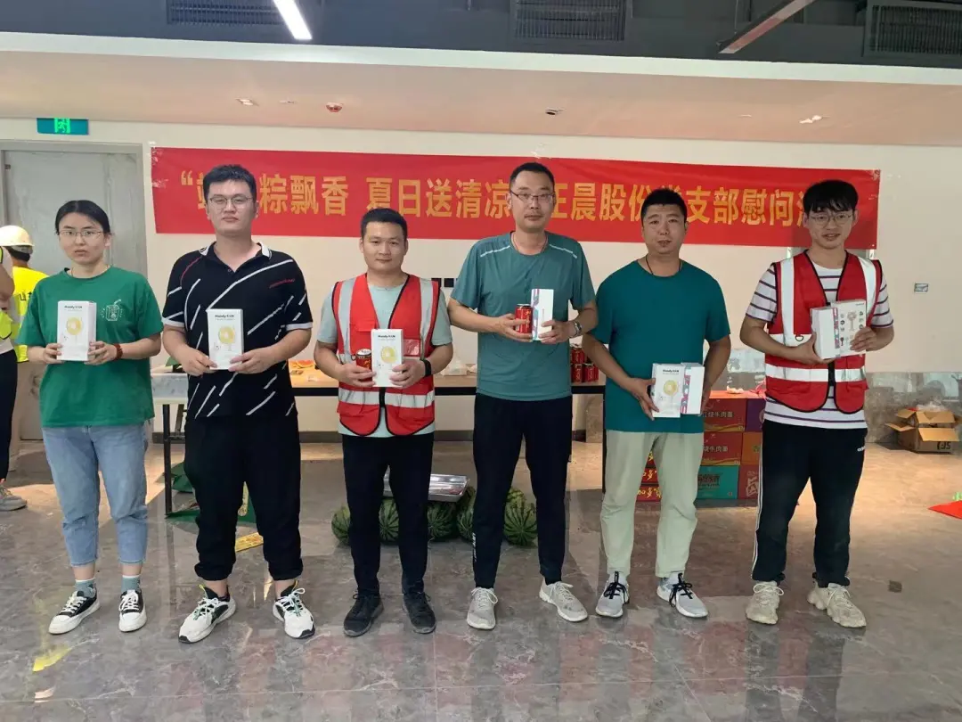 浓情端午粽飘香,走访慰问送清凉。随着气温攀升,奋斗在一线岗位的职工正经历着一场特别的“烤”验。恰逢五月端午,为做好防暑降温工作,喜迎端午佳节,6月11日正晨股份党支部在智能交通产业园项目开展了“端午粽飘香 夏日送清凉 ”主题活动,为奋战在一线的职工送去清凉与欢乐,让员工切实感受到公司及组织的关爱。